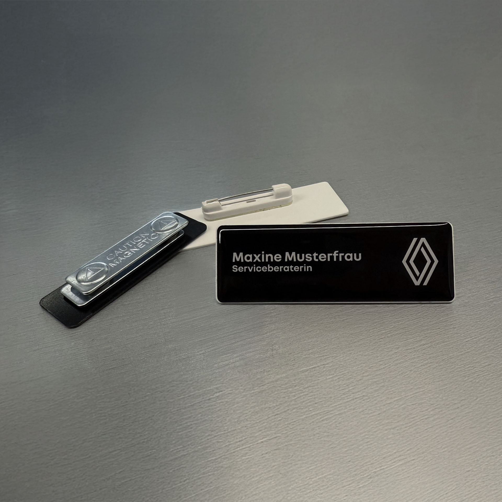 Ob für Verkauf, Service oder Empfang. Diese Namensschilder passen zu den Markenauftritten von Renault, Nissan und Dacia. Klar beschriftet mit Name und Funktion, hochwertig verarbeitet und innert kurzer Zeit geliefert. Bei uns produziert, innert kurzer Zeit bei Ihnen.